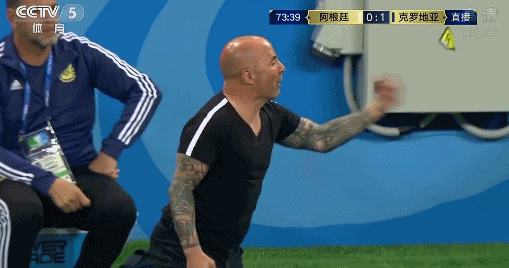 阿根廷0-1落后,主教练桑保利着急得把外套都脱了……露出了纹身