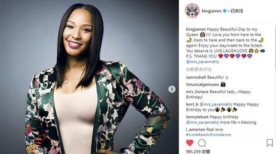 湖人球星勒布朗-詹姆斯今天通过ins向他的爱妻萨凡娜示爱:“祝我的女王美丽日快乐!我对你的爱从这里到那里,然后回到这里,再到那里!尽情享受你的日子。这是你应得的。生活,大笑,爱!谢谢。”两人在学生时代就相恋,至今已经有20年,而且育有三个可爱的孩子。