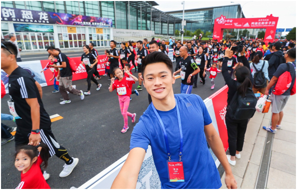 “闪电教官”谢震业作为特邀嘉宾,也全程参与了赛事。开赛前,谢震业与组委会领导一同参与了发枪仪式。早上八点整,伴随着发令枪响,亲子跑赛程正式拉开序幕。随后,谢震业来到了赛道边为孩子们加油助威,并与他们热情合影,鼓励他们坚持完成挑战。