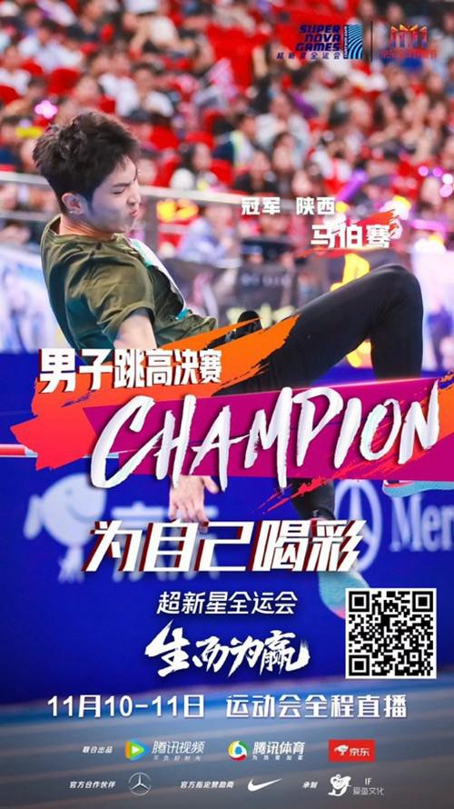 男子跳高决赛中,海外队的Mike首跃异常轻松,平稳落地后以一个华丽的后空翻作为结束动作,引发粉丝尖叫连连,但后续多次紧张引发失误,最终跳过1.45米高度后被淘汰,更被网友戏称为“戏多”。每次抬高横杆都有选手出局,最后1.6米成为决出前三名的关键。早在集训中就展现了弹跳力和胜负心的马伯骞第一次起跳碰掉横杆,第二次则划出漂亮的弧线一跃而过,随后强大的对手李星在第三次试跳也获成功。之后,横杆提高到1.65米,李星和马伯骞在这个高度展开了一番跳高battle,遗憾的是二人纷纷宣告失败,最终先跳过1.6米的马伯骞获得冠军,拿下本项目的金牌。当晚,“李星的腿真好看”登录热搜TOP1,跳高亚军李星凭借在《超新星全运会》中的表现迅速圈粉。