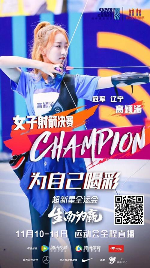 经过前一天热血澎湃的角逐,由腾讯视频、腾讯体育和京东联合出品打造的《超新星全运会》迎来第二个比赛日。11月10日的比赛中,徐梦洁变身真正意义上的“火箭少女”,在50米短跑比赛中爆发惊人实力,轻松摘得冠军奖牌。男子射箭预赛中于小彤惊喜给出三箭29环的超高成绩,成为夺冠的头号种子选手。11日赛程依旧很丰富,共进行了短跑、射箭、跳高、艺术体操等多项比赛,杨超越、Yamy、高颖浠、于小彤、王志文等“超新星”们在赛场上奋力拼搏,最终广东代表队拿下了这场运动会的团队冠军。