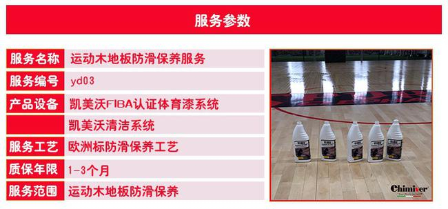 基于FIBA标准对篮球运动木地板进行防滑处理,需要选对产品,好的产品,不仅能让人放心,最主要的是对地板进行有效的、温和的防滑保护效果。这里推荐凯美沃(CHIMIVER)的产品。