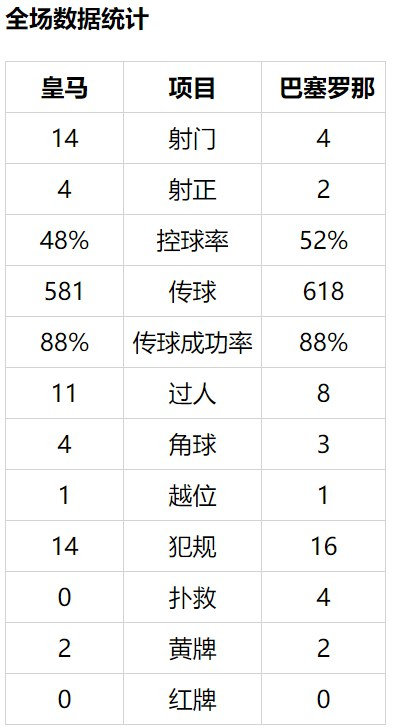 维尼修斯左路传球,克罗斯禁区前沿左脚抽射高出。此后他主罚任意球斜传禁区右侧,卡塞米罗在门前10米处头球偏出左门柱。