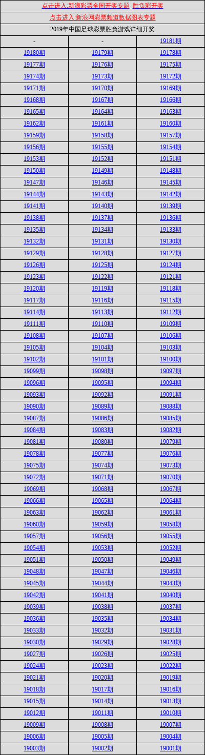 中国足球彩票胜负游戏历史开奖汇总(2019)