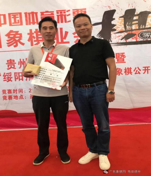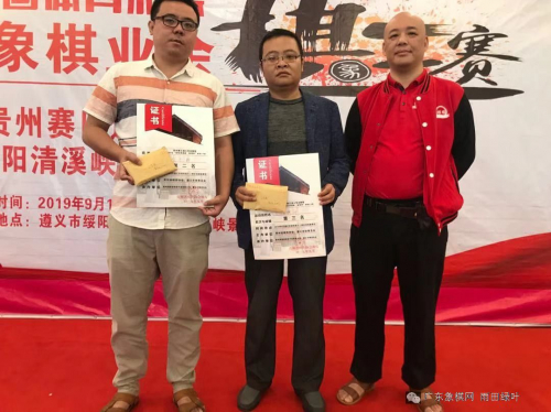 贵州省棋协副主席周刚与亚军陈柳刚、季军朱少钧