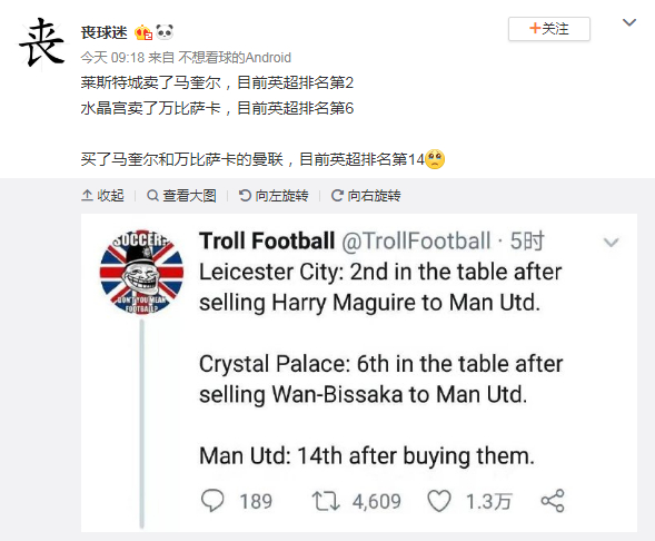 @-WIXMLY-:“你数学是体育老师教的吗,这俩队排名加起来都没有曼联多,谁赚了看不出来?”