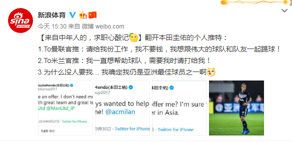 本田圭佑推特求职记