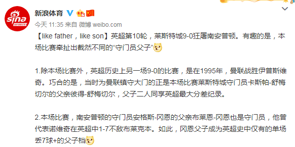 莱斯特城9-0南安普顿
