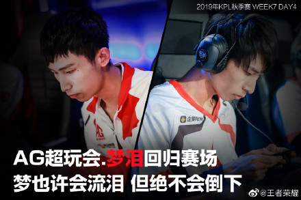 2018年,在很多人的眼中,离开了KPL的梦泪最终只能黯然退役,但他本人却始终没有放弃,最终他随着AG超玩会在本赛季强势回归,虽然如今的他竞技状态并不能称之为顶尖,但确实仍有职业选手的能力,带着信仰与坚持,他与AG超玩会决定再拼一把,如今他们是西部第一,秋季赛最终冠军的有力争夺者。