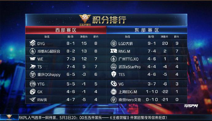 第二场的对阵是VG与YTG,双方赛前分别排名东西部第六名,但从战绩上来看,YTG是更加出色的那一支,赛前YTG也是更多被人看好,但本场比赛的结果却让人有些惊讶,VG连赢三局横扫YTG拿下胜利。VG在赢下这一局之后虽然仍排名东部第六,但与第五名TES之间的积分差距仅差1分。