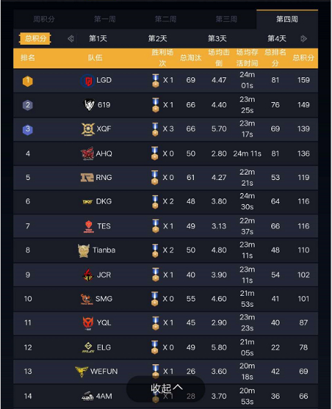 LGD暂居榜首4AM跌至谷底,PEL第四周周冠军花落谁家?