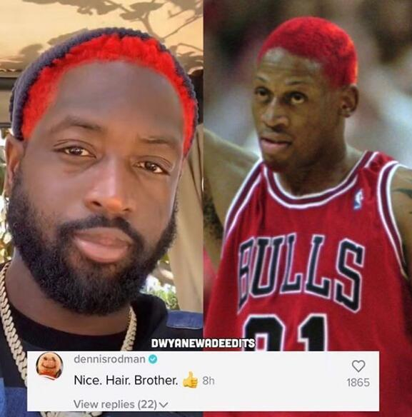 韦德今天晒出了自己的最新发色,此举获得了前辈罗德曼的肯定:“很可以的头发,大兄弟。”