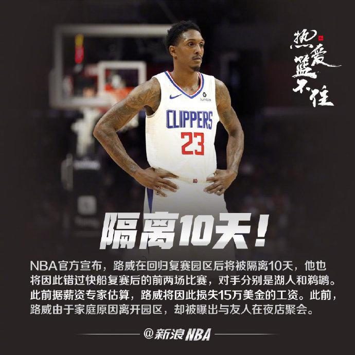 他也将因此错过快船复赛后的前两场比赛,对手分别是湖人和鹈鹕。