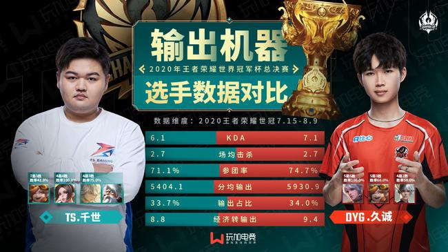 千世与久诚都是那种输出能力极强的中单:久诚作为KPL历史输出王,个人能力极强,世冠至今百分百胜率的百里守约是每一个对手都必须防备的一点,此外,久诚在本次世冠中还没有使用过自己的成名英雄干将莫邪,有可能是DYG依旧留存的大招;千世则是一位实力大于名气的选手,他不像久诚那样耀眼,但进入比赛的舞台之后,他的贡献不会比任何一位中单选手差,千世的不知火舞世冠至今也是百分百胜率,或许会让DYG有所忌惮。