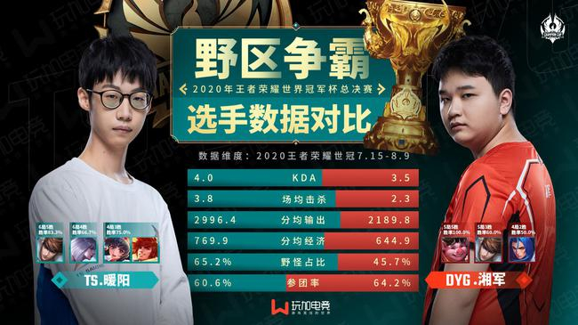 野区方面的对抗在暖阳和湘军,暖阳在多项个人数据中处于领先,而在参团率方面,湘军占优;两人都偏向于在前期带动队伍节奏,后期团战威胁对手后排,从星味上来看,暖阳作为TS的绝对核心更浓厚一些,但从硬实力来说,暖阳虽有领先,但二人的差距不会太大。本场比赛的整体走势如何,两位打野的发挥至关重要,暖阳经历的大场面更多,所以在总决赛的舞台也许会有更好的发挥。