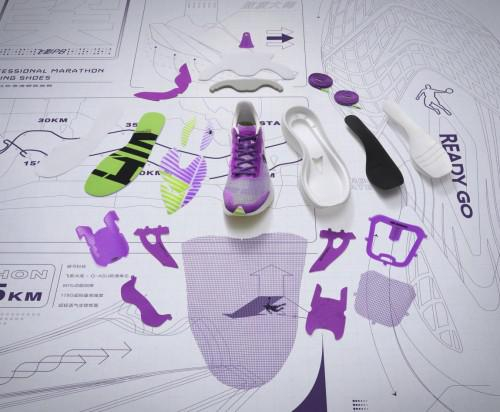 除了上述两大核心科技之外,飞影PB还在设计和生产中充分考虑到了它作为一款实战跑鞋的功能性。包括FLEXING网纱材质 & Q-ASU防滑单元在内,飞影PB采用了半透明材质网纱,通过轻量、简约的帮面设计,保证跑者的专业需求,同时也能够最大化呈现材质轻便、透气、包裹性强等实战中的重要特点,仿佛在鞋子里安装了一台空调般舒适;大底橡胶采用了全新的注塑工艺——Q-ASU防滑单元比传统的橡胶更加轻质、防滑、耐磨;在鞋底花纹设计方面运用极具未来感的参数化设计,并结合凹凸的不规则橡胶纹路所生成的大底颗粒,加强了在湿滑、崎岖路面上的抓地力,进一步提升跑鞋适应不同路面情况的性能。