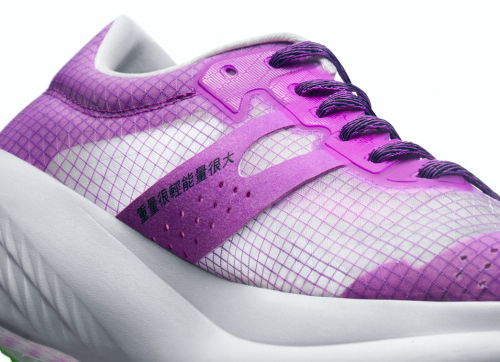 此次飞影PB使用了高韧性勺型全掌碳纤维板,为跑者在奔跑过程中提供强大的形变恢复能力,减少了跑步过程中的能量损耗,进而帮助提升运动成绩。上坡时,碳板增强了前掌韧性,储存和释放每一步的能量,提升跑步经济性;而在下坡时,30mm厚的巭PRO超临界泡棉能够有效吸收额外的冲击,降低跑步损伤风险。