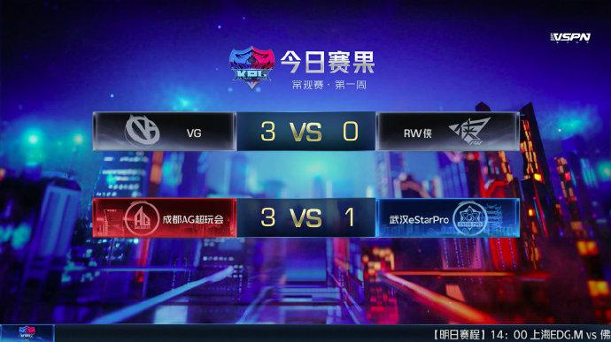 此外,在昨晚结束的另一场比赛中,VG以3-0战胜RW侠,取得赛季开门红。