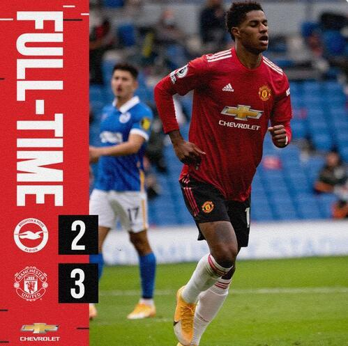 英超-比赛最后时刻获得点球 曼联3-2险胜布莱顿