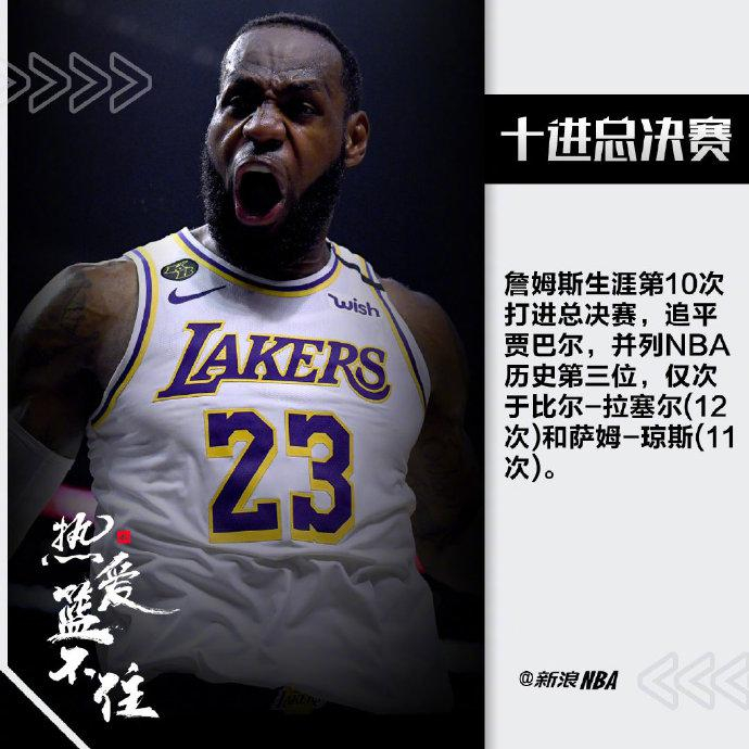 追平贾巴尔,并列NBA历史第三位,仅次于比尔-拉塞尔(12次)和萨姆-琼斯(11次)。