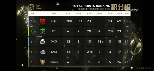 9月27日晚,2020 PEL和平精英职业联赛S3赛季首周比赛落下帷幕,YQL战队拿下首周冠军,成功夺得荣誉三级头,将100万的周冠军奖金揣入怀中。TC和DKG分获亚军和季军。