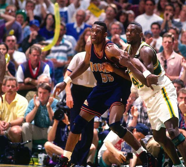 当年作为姚明的替补,球迷见识到了穆大叔的风采。94-5赛季穆托姆博还在为掘金效力,但已经展示了超强的封盖能力。该赛季结束后,穆托姆博拿到了DPOY奖项,但防守一阵却是布雷洛克+佩顿+皮蓬+罗宾逊+罗德曼,他被排在了二阵。当然了,穆托姆博此后还三次拿到最佳防守球员,最终也入选了防守一阵。
