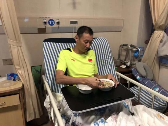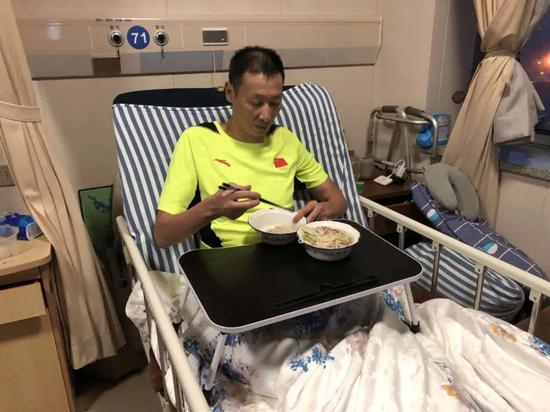 杭州城东医院711房间,正对着货梯,这里是前男排国手郑亮的病房,也是他的“家”。