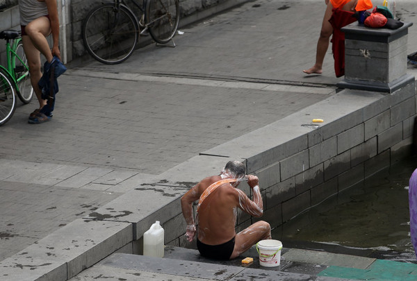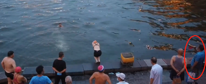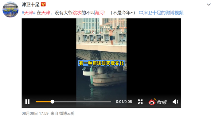 一到夏天,海河就会迎来大批只穿着裤头的大爷,随后他们会当众跳河。
