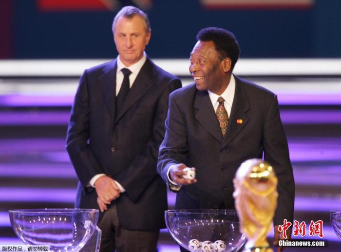 2005年12月9日,德国莱比锡,克鲁伊夫与球王贝利出席2006年世界杯决赛的抽签仪式。