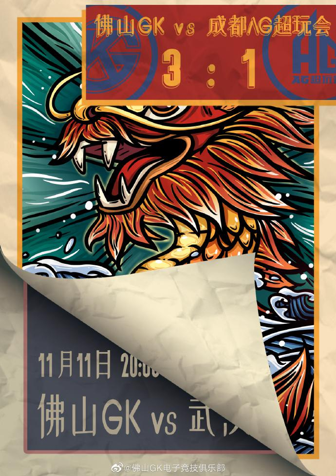 11月6日,2020KPL秋季赛常规赛第八周,佛山GK爆冷战胜成都AG超玩会,终结了后者的九连胜,同时佛山GK也告诉了联盟中其他队伍,成都AG超玩会并非不可战胜。