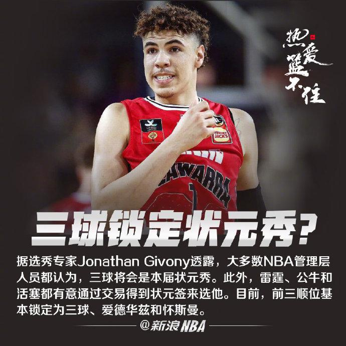 据报道,大多数NBA管理层人员都认为,三球将会成为本届状元秀。雷霆、公牛和活塞都有意通过交易得到状元签来选他。目前,本届选秀的前三顺位基本锁定为三球、爱德华兹和怀斯曼。