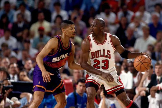 巴克利加盟太阳的第一个赛季就从乔丹手中抢走常规赛MVP,并率太阳自1976年后首次打入总决赛。可惜,当年总决赛太阳遇到了神灵附体的乔丹。6场总决赛下来,乔丹场均轰下41分8.5个篮板6.3次助攻1.7次抢断,投篮命中率50.8%,三分命中率40%。乔丹的无解表现,让太阳上至主帅保罗-韦斯特法尔,下至巴克利和约翰逊都欲哭无泪。