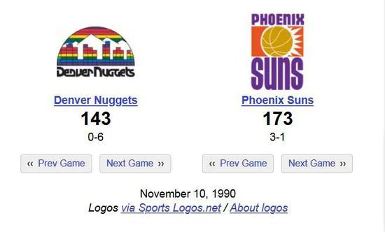本场比赛并未打加时,在常规时间内能打出如此高的得分,在NBA史上都是不多见的。值得一提的是,和如今三分球漫天飞舞不同,该场轰下173分的太阳,全场三分竟只有2投0中,而掘金三分也只有7中2。