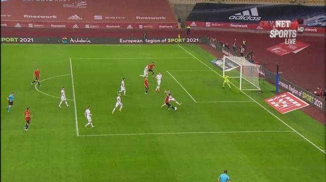 欧国联西班牙vs德国上半场,莫拉塔打进第二球,但裁判判罚越位在先……