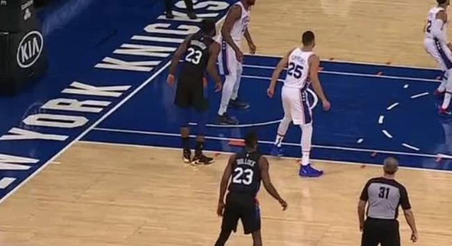 来,尼克斯队得分后卫雷吉-巴洛克的球衣正面是25号,但是他的球衣背后却是23号。当发觉了这个问题之后,巴洛克迅速跑到场边更换正确的球衣,而且脸上露出了尴尬的笑容。