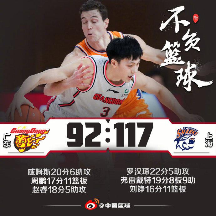 上海大胜广东 终结对手9连胜
