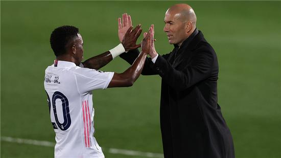 [图4 维尼修斯与齐达内击掌]