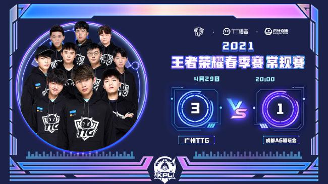 4月29日,KPL春季赛常规赛S组,广州TTG以3-1的大比分战胜成都AG超玩会。