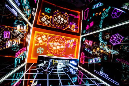 本次K甲总决赛还在赛场外部布置了体验区,充满科幻未来感的霓虹灯写出了几个极具代表性的客家话“马概”“唔输多掐”“酿满讲”;而惠州当地的特色菜肴麻陂肉丸、酿豆腐、博罗酥糖同样被“高亮”标出,提醒着吃货们这里有不容错过的美食;惠州地标建筑合生大桥、朝京门的轮廓同样被勾勒出来点亮着体验区,唤醒着观众们的城市记忆。