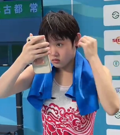 上午11点,全红婵上场,并在第一跳中取得82.5分的高分。解说将其称为“丝毫不亚于在奥运会上的那组动作”,整个起跳高度,空中姿态,都趋近完美。