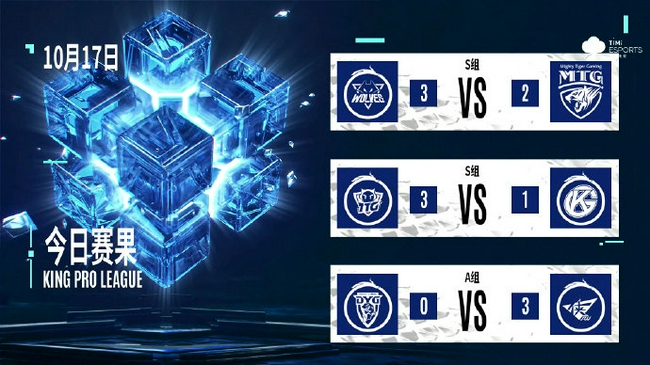 10月17日,KPL秋季赛常规赛继续进行,重庆狼队与MTG为观众贡献出一场精彩的五局大战,重庆狼队3-2取胜;广州TTG以3-1的大比分战胜佛山GK;RW侠以3-0战胜深圳DYG。