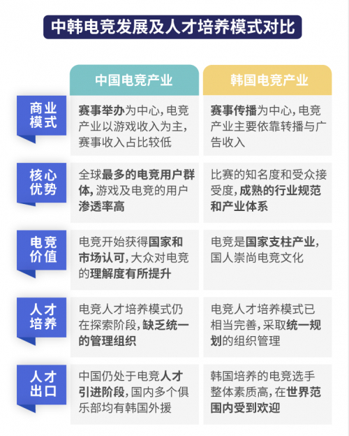 不过,需要指出的是,尽管中国的电竞产业在近年来发展迅猛,但与电竞产业发展更早的韩国、欧美相比, 在产业体系、商业模式、人才培养等方面,仍存在一定的差距。