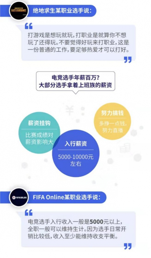 实事情况却不是如此。通常来说,电竞选手的入行薪资在5000-10000元左右,比赛成绩对薪资的影响较大。‘工作就是打游戏’、‘打打游戏月入过万’,在这些虚假光环的背后,除了头部电竞选手外,选手在入行时与普通上班族的薪资差距并不大。如果不能打出成绩、拿到奖牌,选手的薪资也很难有大幅的提升。