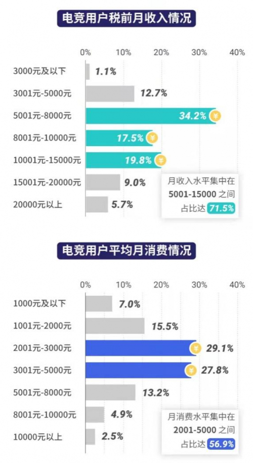 此外,电竞用户整体还呈现年轻化的特征,成年00后及90后的总占比达到71.7%,电竞在当代年轻人中有着巨大的影响力。
