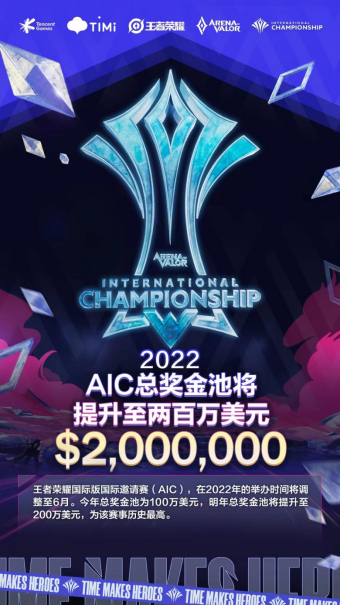 国际赛事方面,2022年AIC国际邀请赛举办时间将调整至6月,来自更多地区的战队将参与其中,为荣誉而战。此外,2022年AIC赛事总奖金池也将再次翻倍达到200万美元,为该赛事历史最高金额。AIC结束后,各联赛将从7月到9月进入第二个赛季,继续展开对2022年王者荣耀世界冠军杯(AWC)参赛资格的争夺。