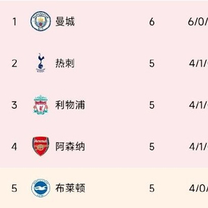 曼城六连胜强势领跑 卢顿战平取队史英超首分