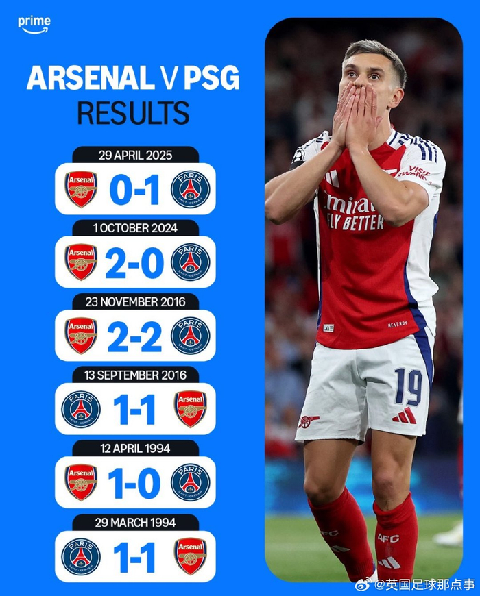 #阿森纳0比1巴黎圣日耳曼# 是阿森纳在俱乐部历史上首次输给巴黎❌