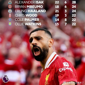萨拉赫在联赛中已直接参与46个进球(28个进球+18次助攻),他有望打破由希勒、安迪-科尔共同保持47球单赛季进球+助攻数据的纪录。