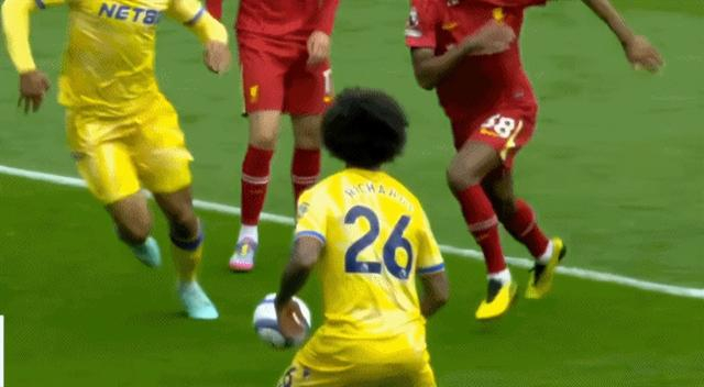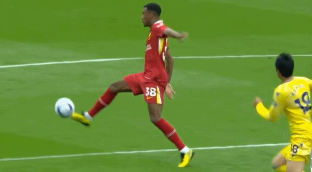 从慢镜头来看,格拉文贝赫面对对手的包夹有假摔的嫌疑。随后,斯洛特让格拉文贝赫回撤到防线,与范戴克搭档中卫,这为他红牌退场埋下了伏笔。