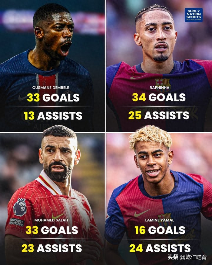 可刚刚结束的24/25赛季的欧洲足坛,有这样的一位孤单超级英雄吗?或许今年3月中旬及其之前的萨拉赫可以算,但遗憾的是法老有时间前提;拉菲尼亚或许倒可以算是一位,毕竟这位欧冠射手榜并列第一而助攻榜同样第一、西甲射手榜第六助攻榜第二的球员,还的确是本赛季制造进球仅次于萨拉赫的球员。